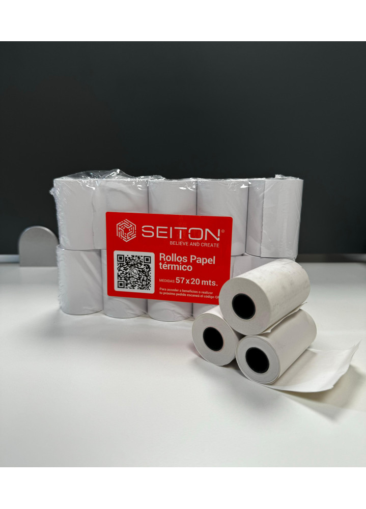 El Rollo Térmico 57x20 Mts Seiton® es ideal para establecimientos que requieren impresiones frecuentes como pequeñas tiendas, restaurantes, bancos, y otros negocios que utilizan terminales de pago. Estos rollos, debido a su alta calidad de impresión y durabilidad, son perfectos para emitir recibos y comprobantes que sean legibles y que deban conservarse durante un tiempo.